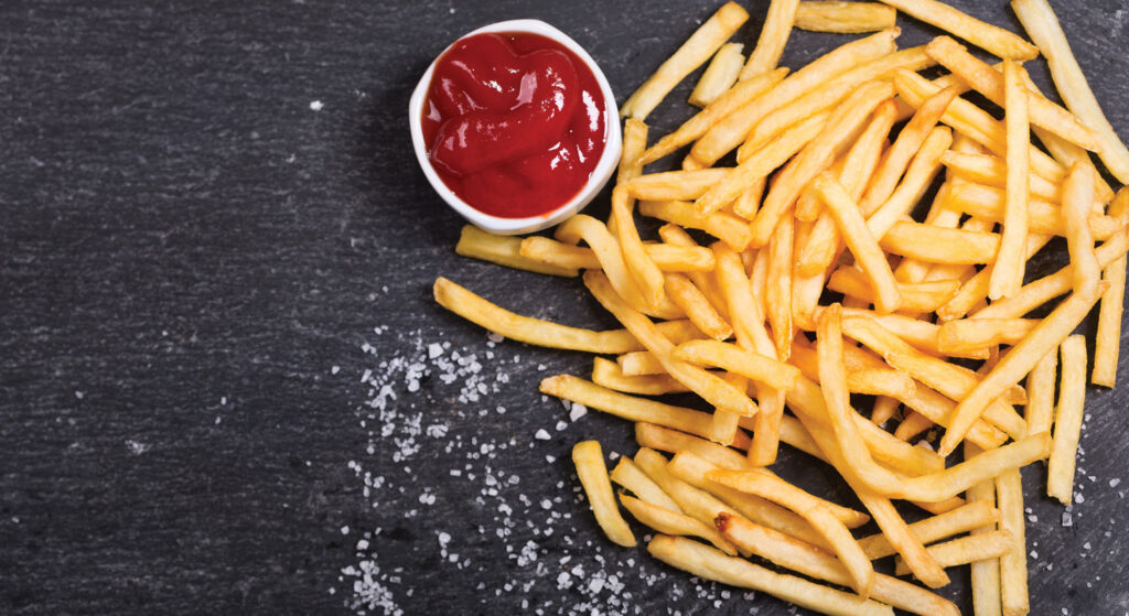 Hot Dog with ketchup, mustard & fried onions